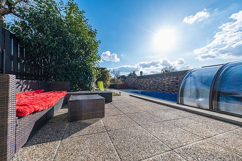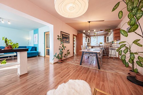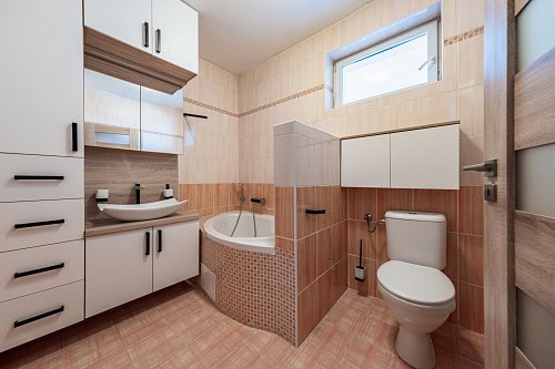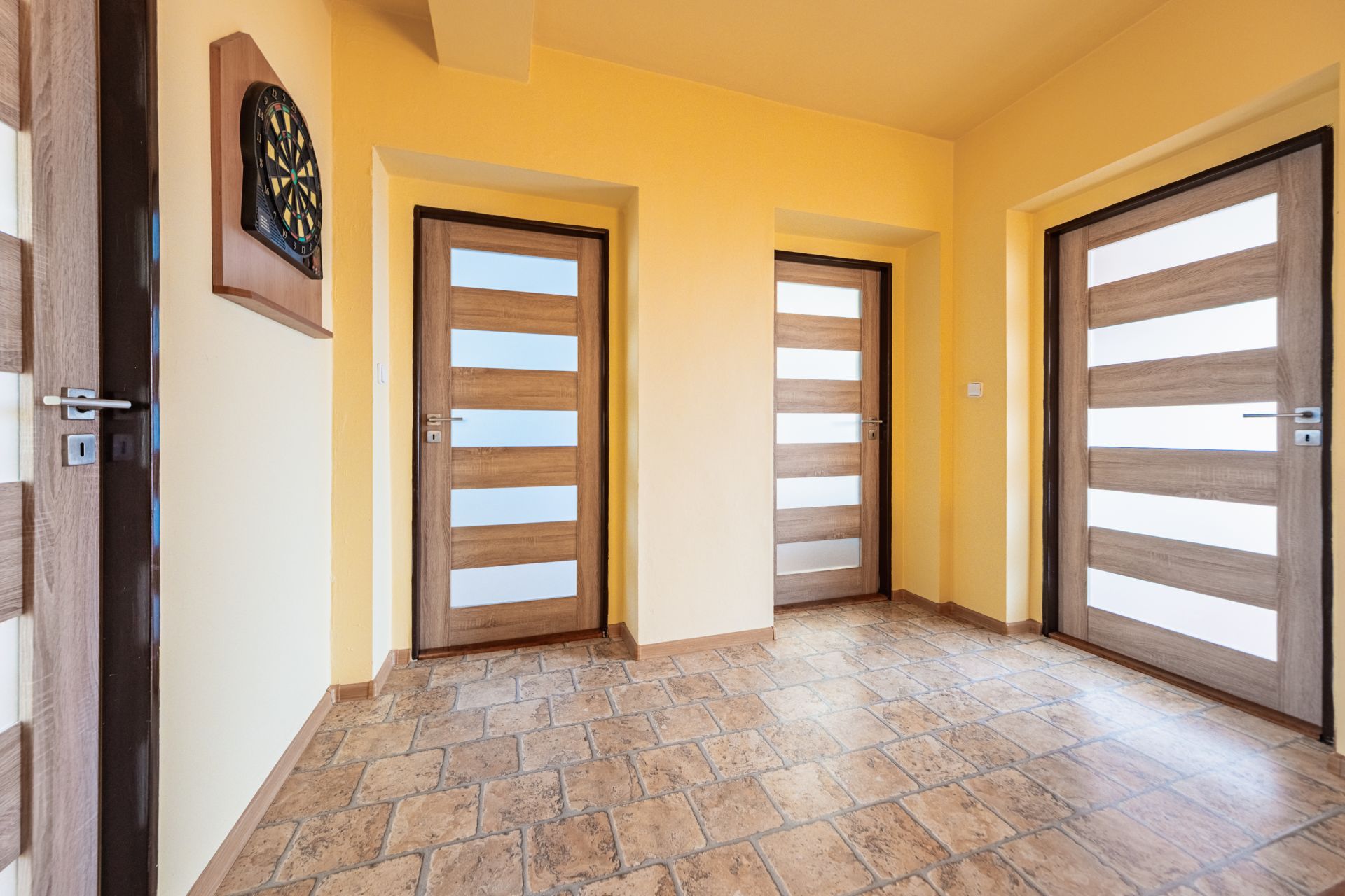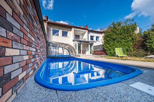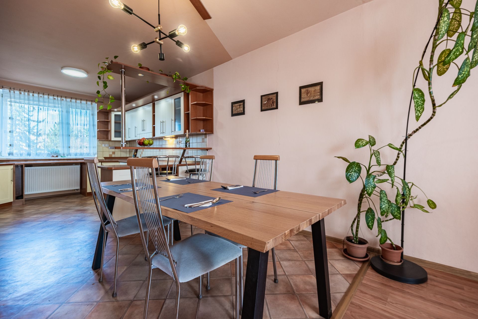 Rodinný dům v klidné části Louny nabízí pohodlí pro větší rodinu i vícegenerační bydlení. Má dvě obytná patra a prostorné podzemní místnosti s okny, které lze využít například jako další byt, pracovnu nebo hobby zázemí. Dům prošel rozsáhlou rekonstrukcí přibližně před dvaceti lety až na nosné zdi včetně rozvodů. Moderní koupelny s toaletou byly dokončeny zhruba před dvěma lety. Dispozice zahrnuje čtyři pokoje, kuchyň s jídelnou, krbová kamna a zimní zahradu, kterou lze v teplých měsících zcela otevřít. Zahrada o velikosti 370 m² nabízí krytý vyhřívaný bazén se slanou vodou, pergolu a prostor připravený pro zahradní domek. Terasu chrání elektrická markýza. Součástí domu jsou také solární panely s bateriemi, které přispívají k nízkým měsíčním nákladům i při celoročním provozu bazénu. Garáž pro dvě auta a další parkování je samozřejmostí. PENB: B.